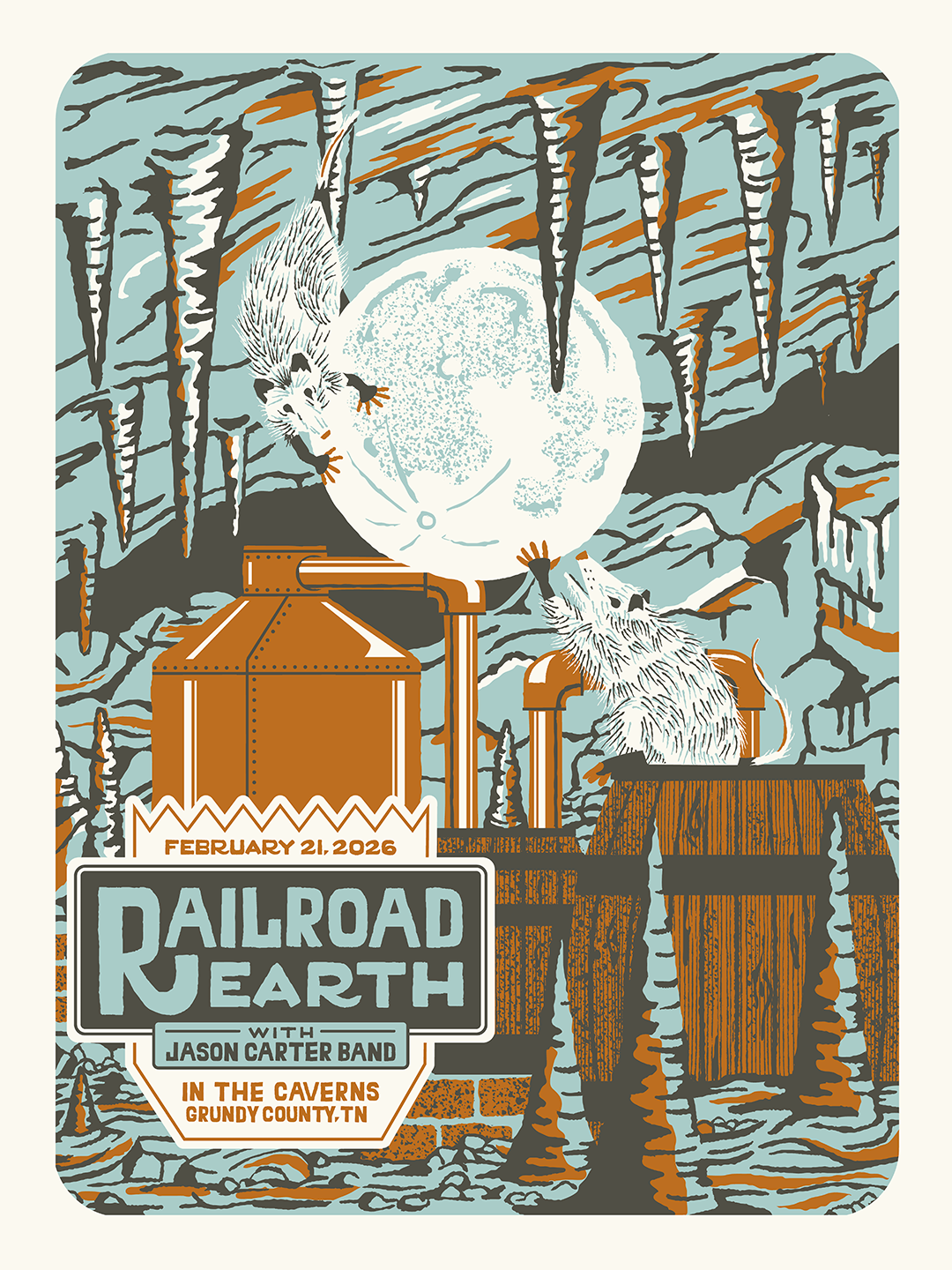 Limited edition screen-printed posterVENUE: The Caverns SIZE: 18" x 24" COLORS: 3NOTES: Created for the February 21st, 2026 performance in Grundy County, TN.